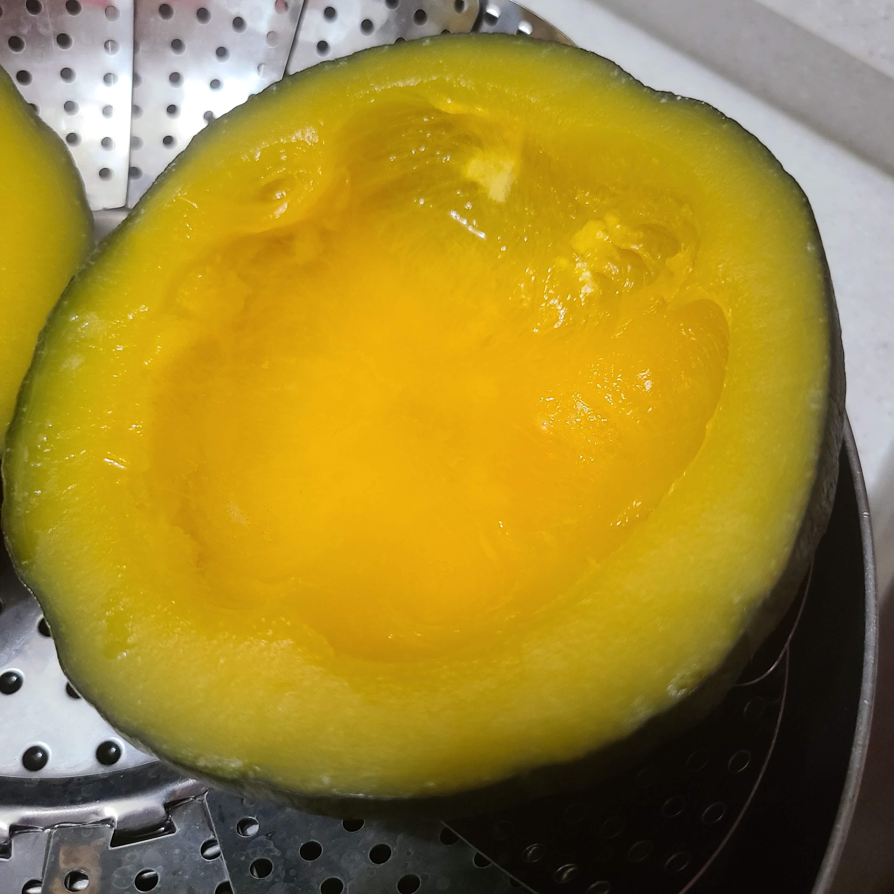 1) 단호박을 찌기 전에 단호박 표면을 식초나 베이킹소다로 깨끗이 씻어주고 속에 있는 호박씨도 제거해줍니다.